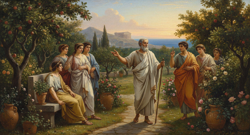 Nach Wanderjahren in Kleinasien ließ sich Epikur um 306 v. Chr. dauerhaft in Athen nieder. Dort gründete er seine eigene Schule, den sogenannten „Kepos“ (Garten). Anders als die Akademie oder das Lykeion war diese Gemeinschaft bewusst privat organisiert. Der Garten war nicht nur Lehrstätte, sondern Lebensgemeinschaft. Bemerkenswert war seine Offenheit: auch Frauen und Sklaven konnten teilnehmen – für die damalige Zeit ein ungewöhnlich inklusiver Ansatz.