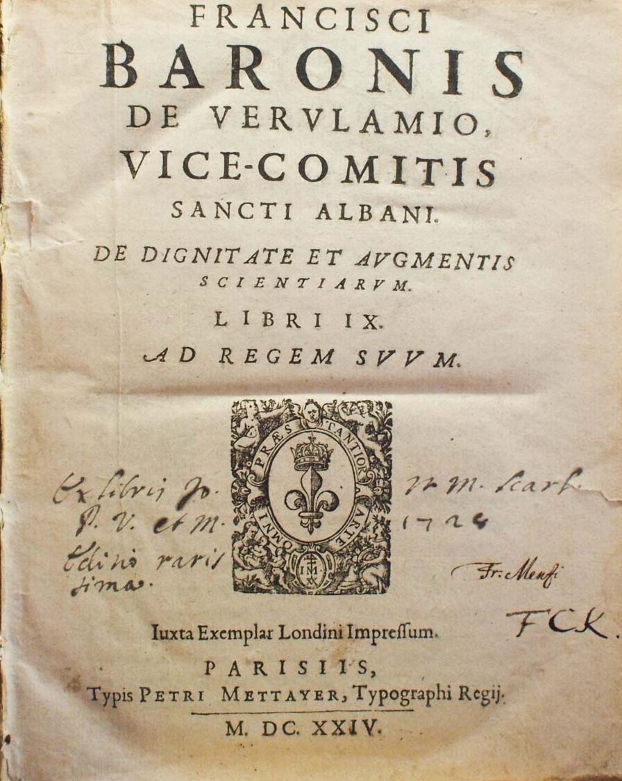 Sein 1605 erschienenes Werk De dignitate et augmentis scientiarum (Über die Würde und den Fortgang der Wissenschaften) stellt einen ersten Versuch dar, eine universelle wissenschaftliche Enzyklopädie zu schaffen.